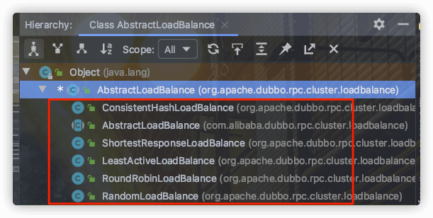 比如说我们想要实现自己的负载均衡策略,我们创建对应的实现类 XxxLoadBalance 实现 LoadBalance 接口或者 AbstractLoadBalance 类。