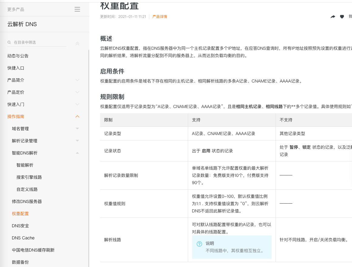 现在的 DNS 解析几乎都支持 IP 地址的权重配置,这样的话,在服务器性能不等的集群中请求分配会更加合理化。像我自己目前正在用的阿里云 DNS 就支持权重配置。