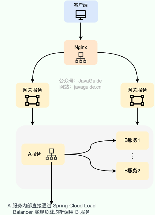 客户端负载均衡 主要应用于系统内部的不同的服务之间,可以使用现成的负载均衡组件来实现。