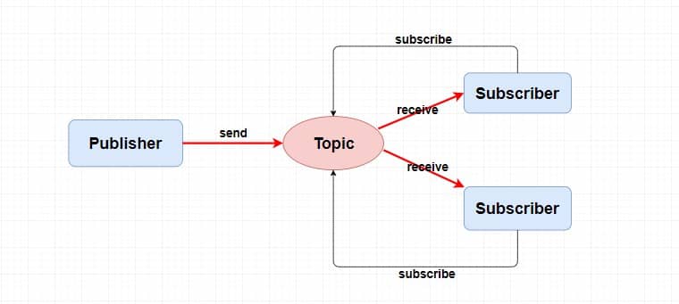 其中,发布者将消息发送到指定主题中,订阅者需要 提前订阅主题 才能接受特定主题的消息。