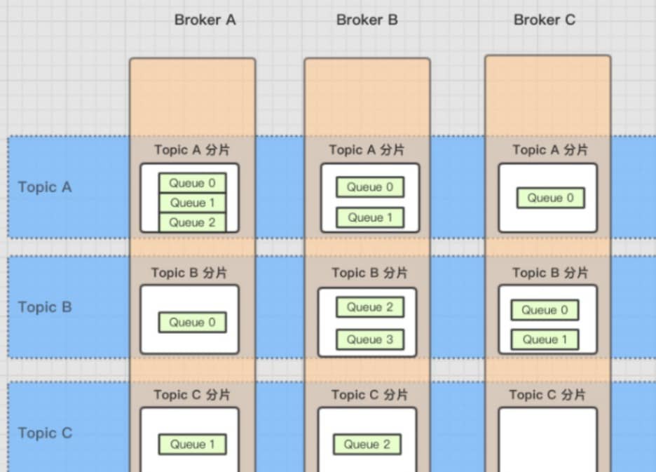 Topic消息量很大,应该给它多配置几个队列(上文中提到了提高并发能力),并且 尽量多分布在不同Broker上,以减轻某个Broker的压力 。Topic消息量都比较均匀的情况下,如果某个broker上的队列越多,则该broker压力越大。