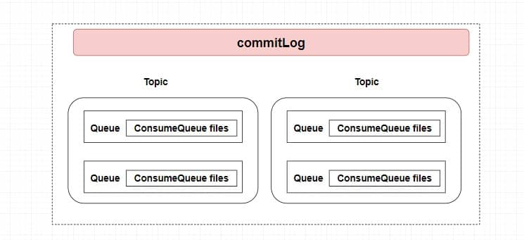 总结来说,整个消息存储的结构,最主要的就是 CommitLoq 和 ConsumeQueue 。而 ConsumeQueue 你可以大概理解为 Topic 中的队列。