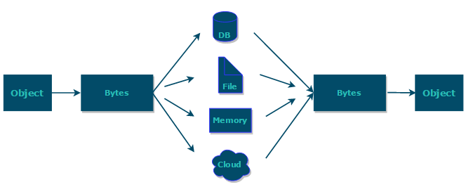 - 将对象存储到内存之前需要进行序列化,从内存中读取出来之后需要进行反序列化。