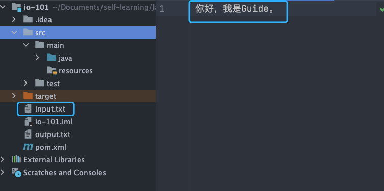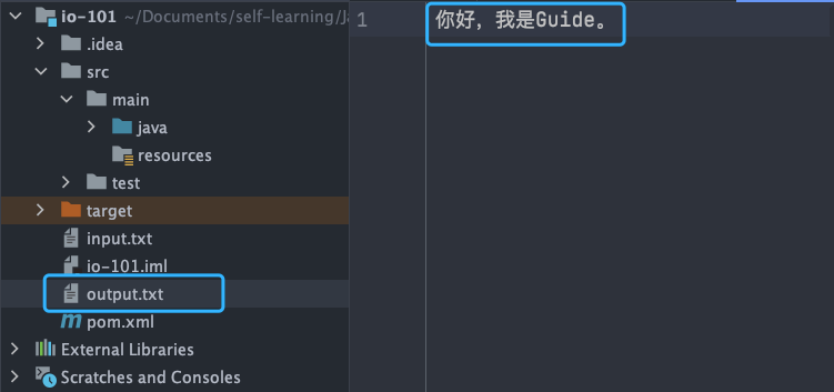 乱码问题这个很容易就可以复现,我们只需要将上面提到的 FileInputStream 代码示例中的 input.txt 文件内容改为中文即可,原代码不需要改动。