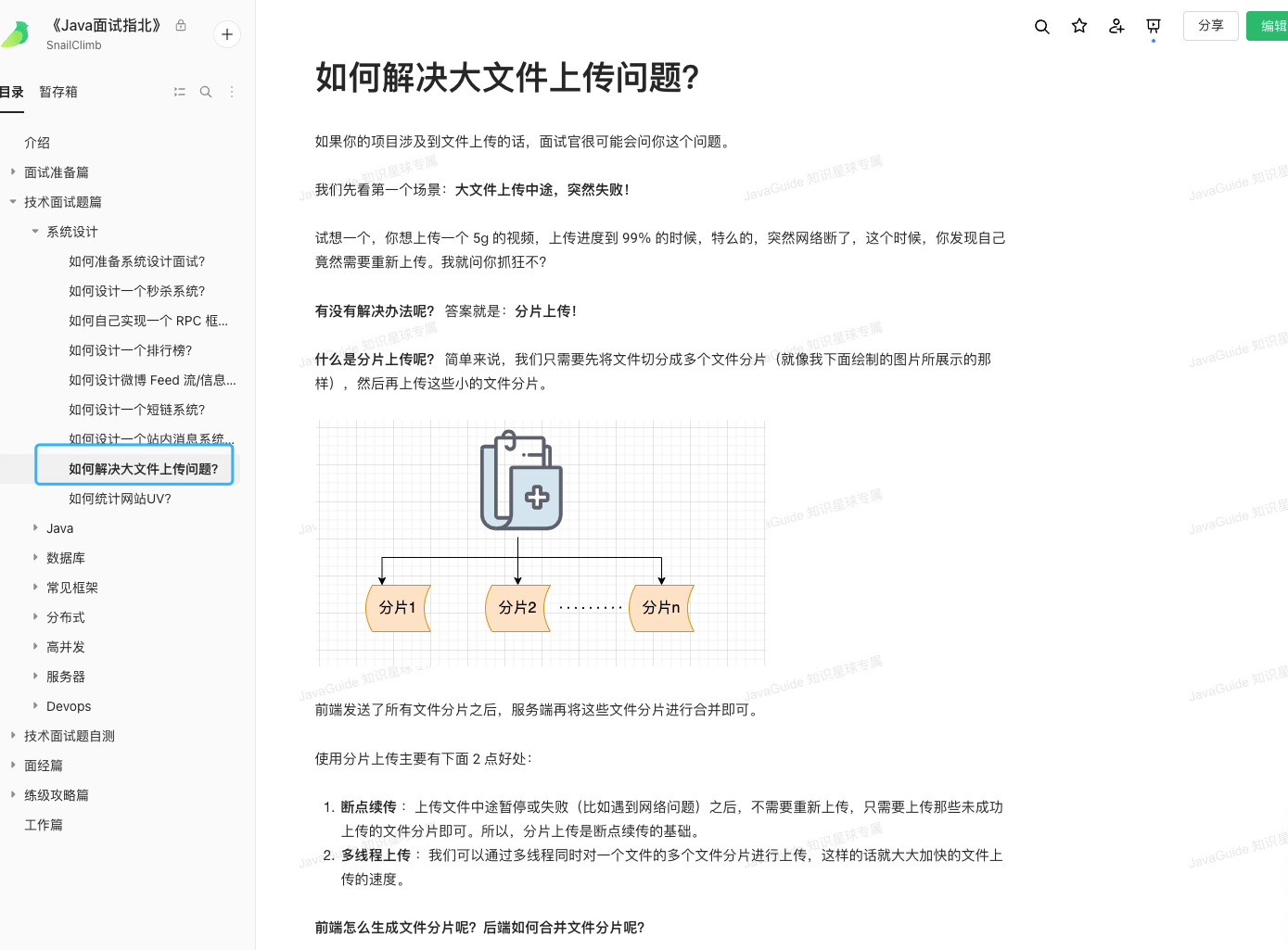 我在《Java 面试指北》中详细介绍了大文件的上传问题。