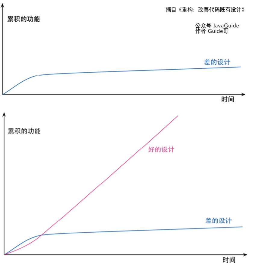 重构并不会减慢软件开发速度,相反,如果代码质量和软件设计较差,当我们想要添加新功能的话,开发速度会越来越慢。到了最后,甚至都有想要重写整个系统的冲动。