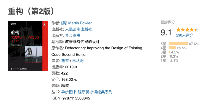 前段时间重读了《重构:改善代码既有设计》,收货颇多。于是,简单写了一篇文章来聊聊我对重构的看法。